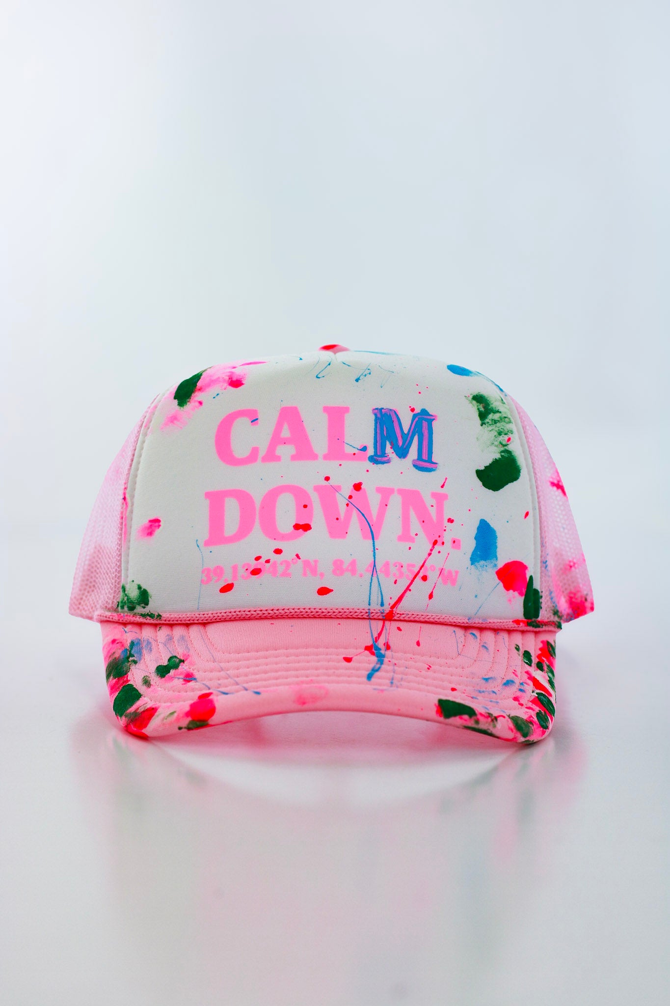 CALM DOWN HAT: 1 OF 1 PINK NET, WHITE PANEL, PINK INK