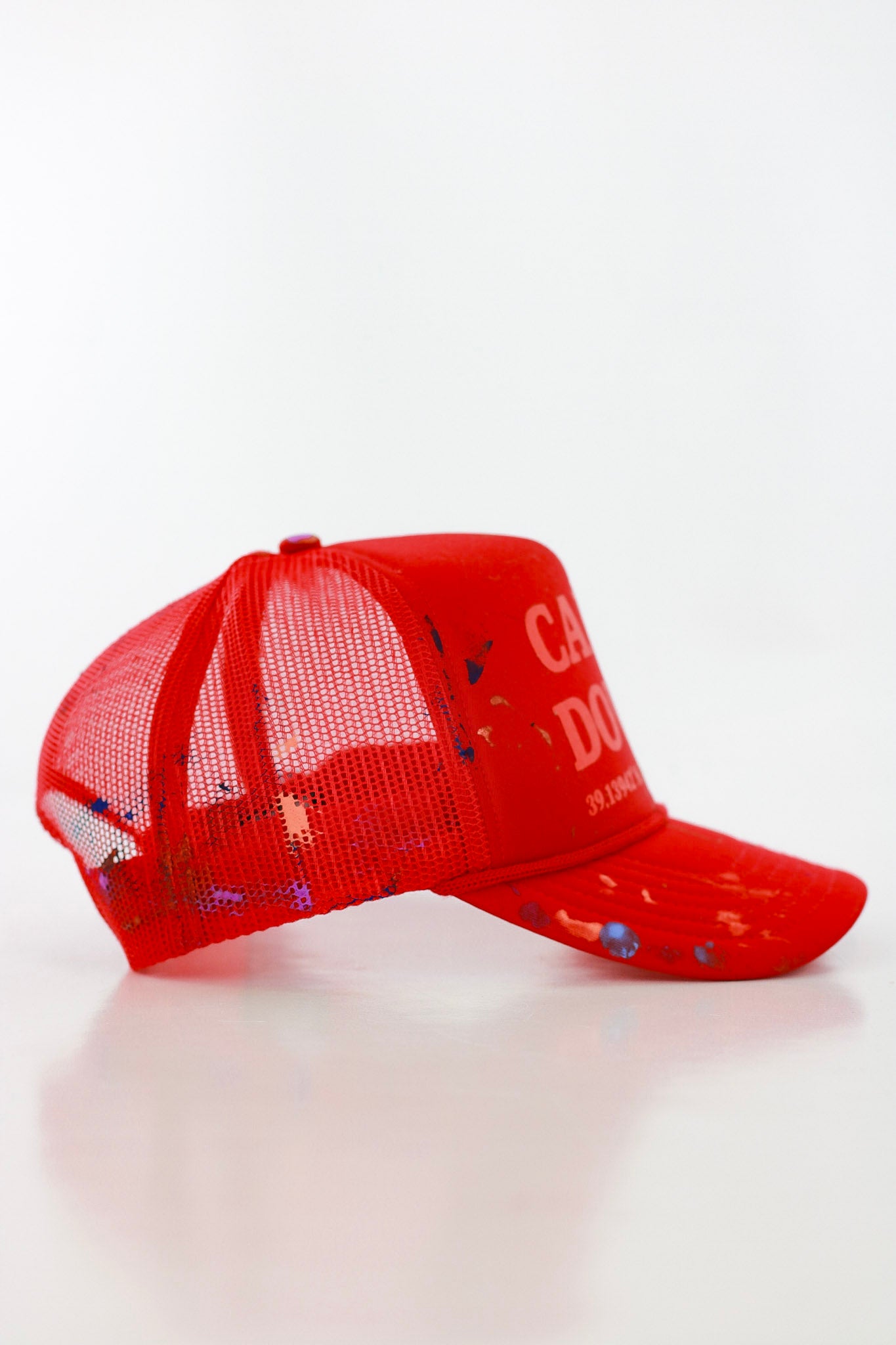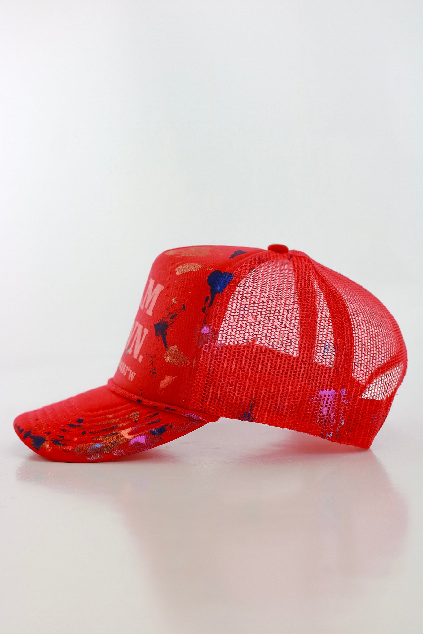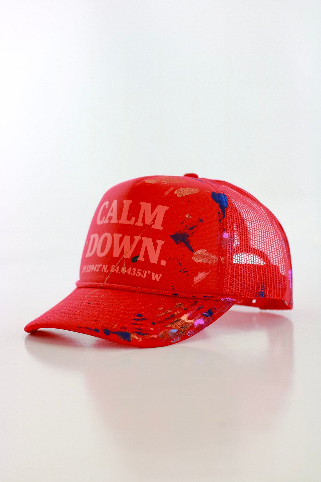 CALM DOWN HAT: 1 OF 1 RED NET, RED PANEL, RED INK