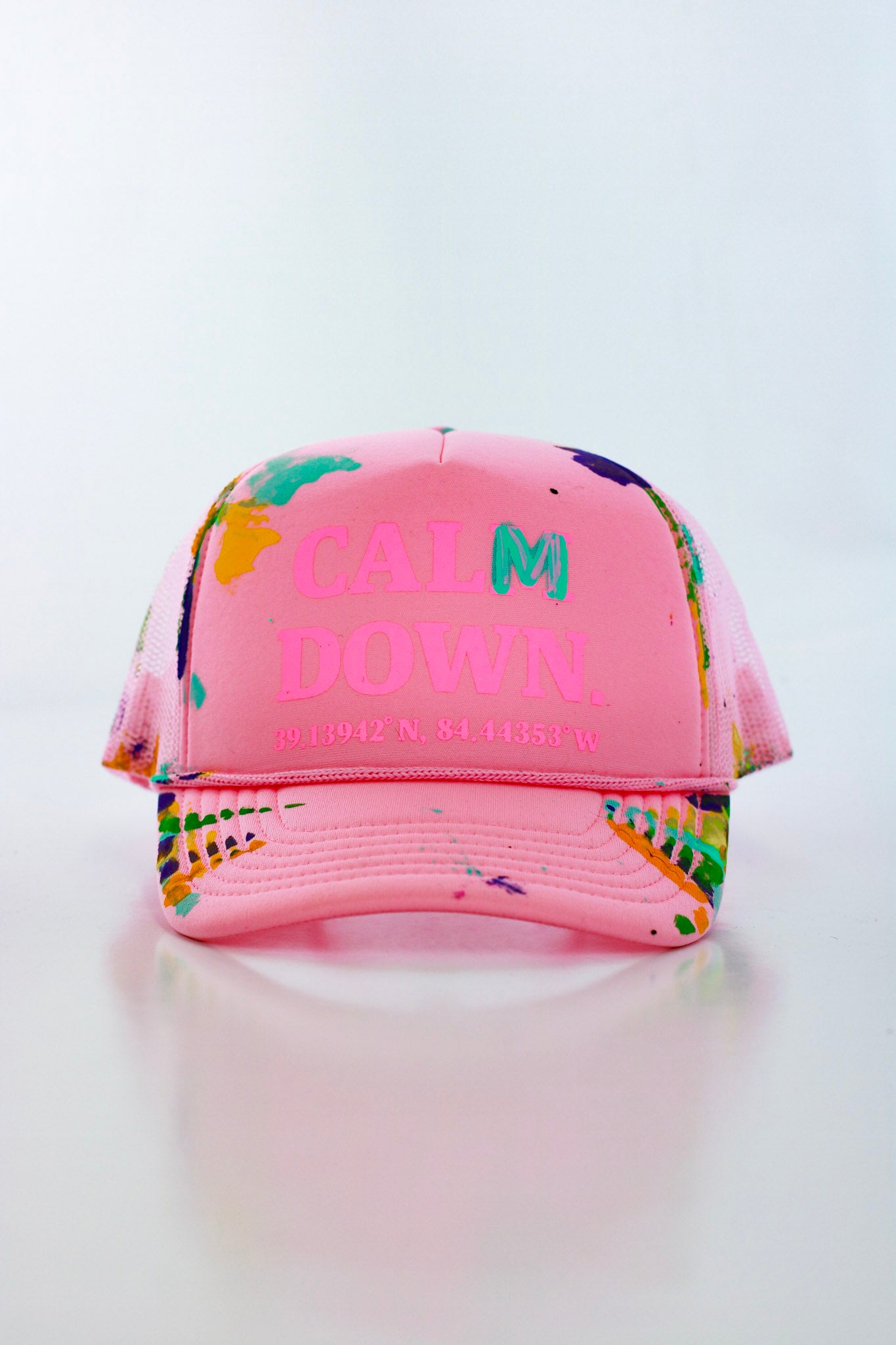 CALM DOWN HAT: 1 OF 1 PINK NET, PINK PANEL, PINK INK